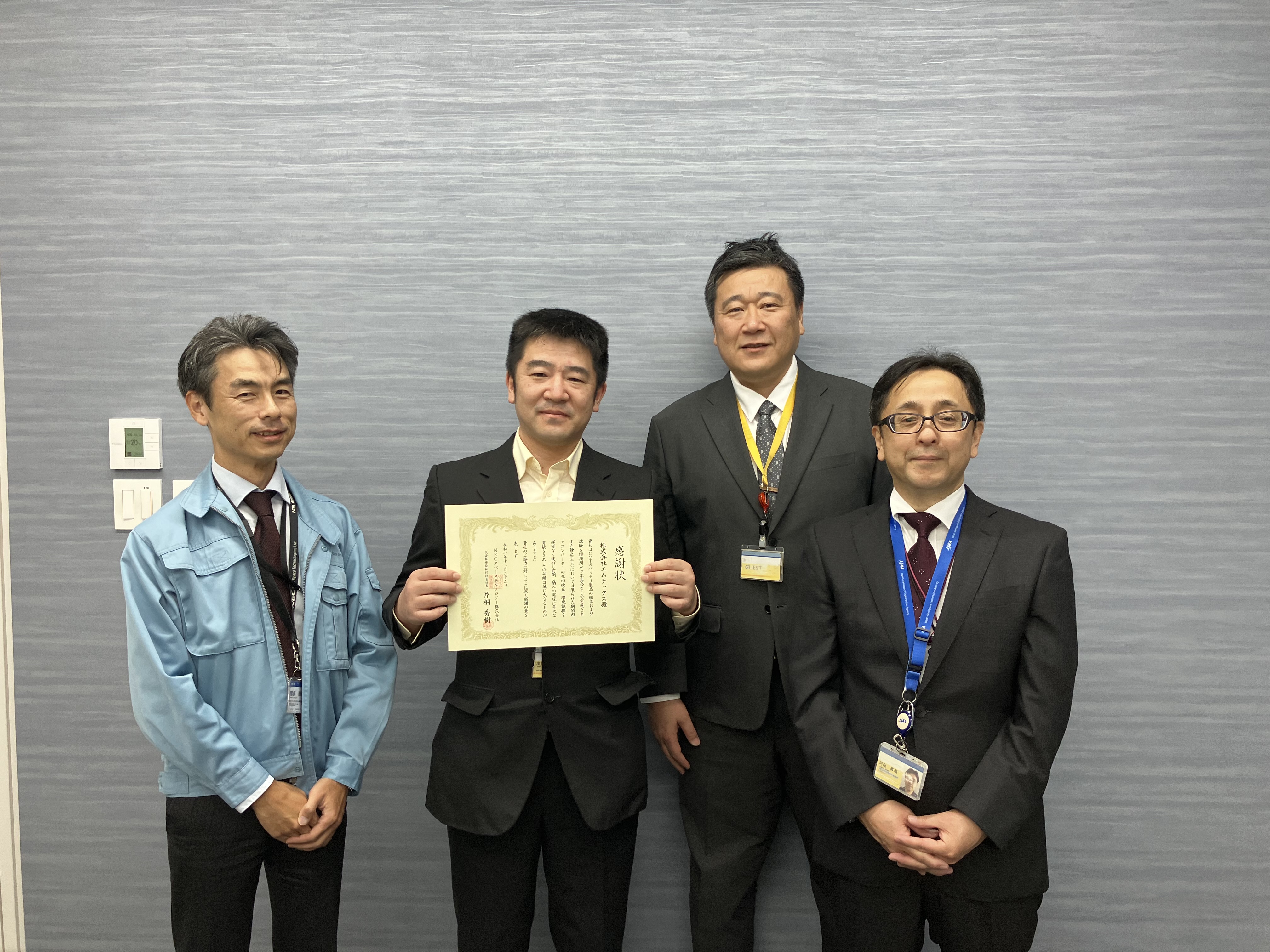 | 2022.7 | NECスペーステクノロジー株式会社様より機器の納期前倒し実現について感謝状を拝受致しました |